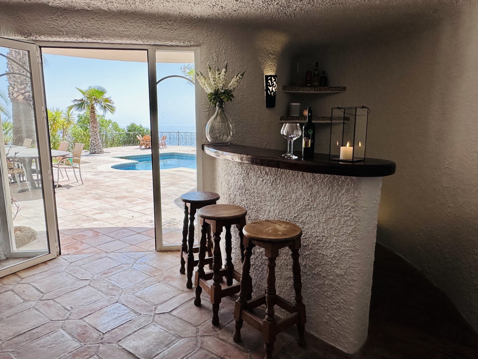Also attached, but on the pool side, is a bodega with a bedroom (180x200cm), bathroom and a large entertainment area with a pool table, TV and bar overlooking the pool. The guesthouse has its own air conditioning.